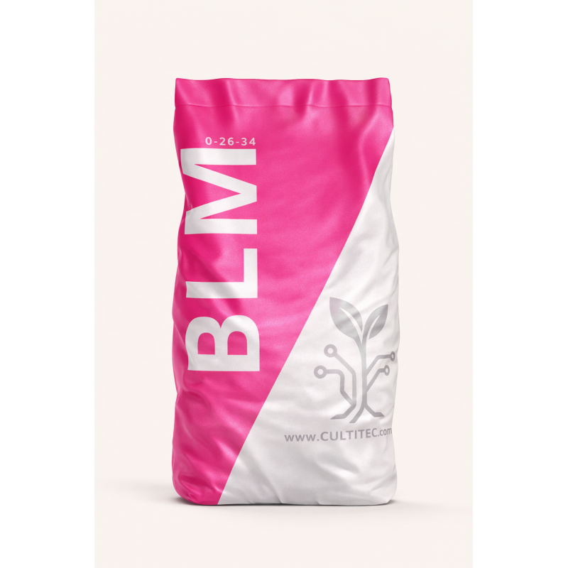 BLM es un fertilizante sólido de alta pureza, formulado con fósforo (P) y potasio (K) de rápida asimilación. Su equilibrio nutricional está diseñado para potenciar la fase de floración en cultivos de alta exigencia, favoreciendo la formación de flores densas, color intenso y aroma característico.